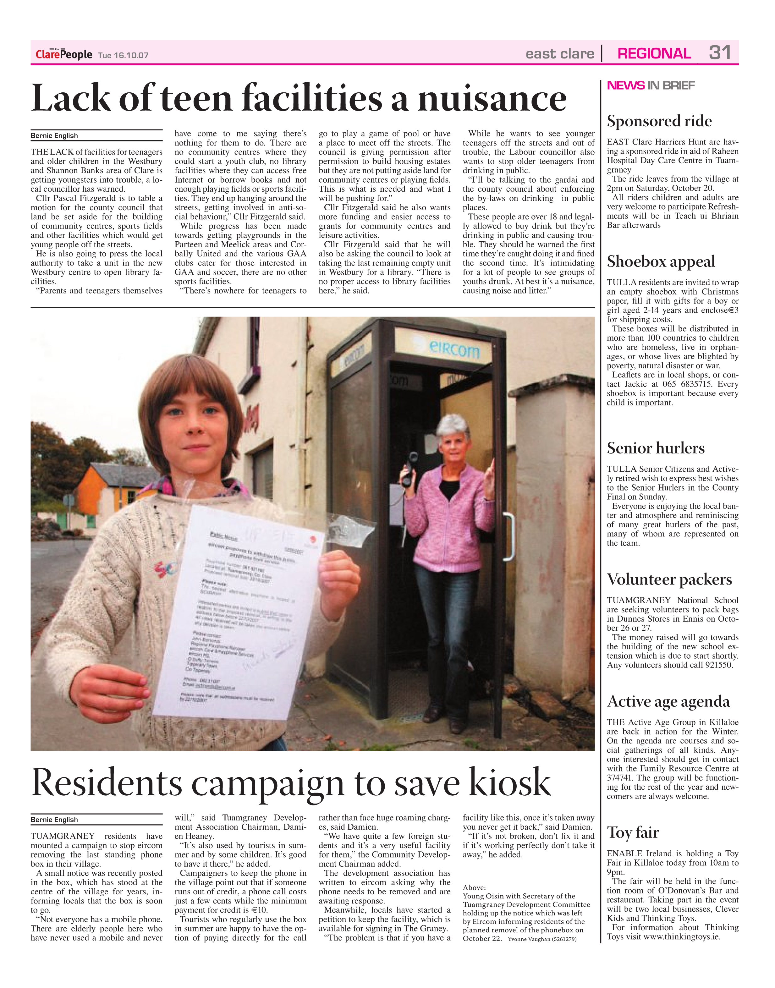 This article is from page 31 of the 2007-10-16 edition of The Clare People. OCR mistakes are to be expected so download the original SWF or the rendered page 31 JPG