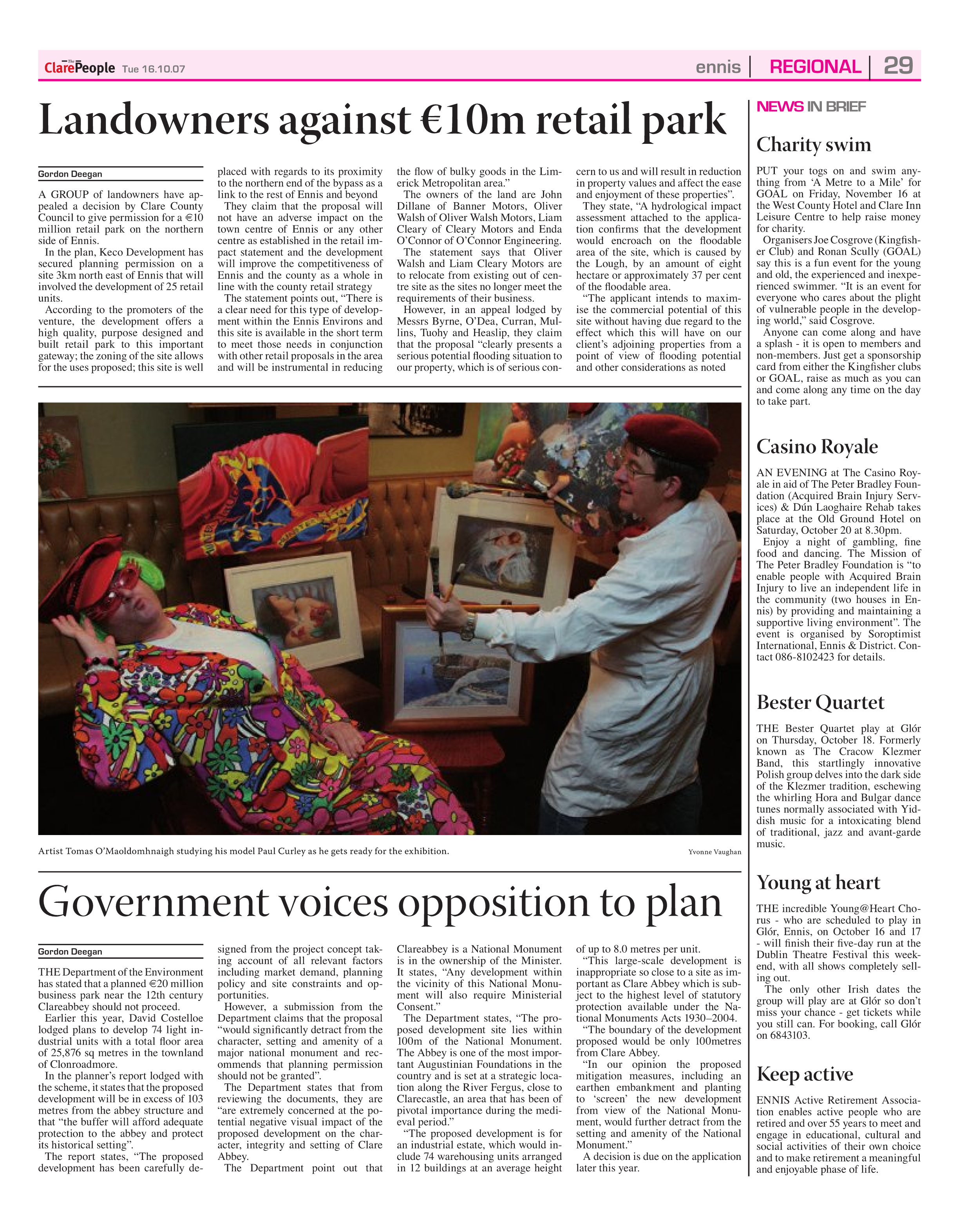 This article is from page 29 of the 2007-10-16 edition of The Clare People. OCR mistakes are to be expected so download the original SWF or the rendered page 29 JPG