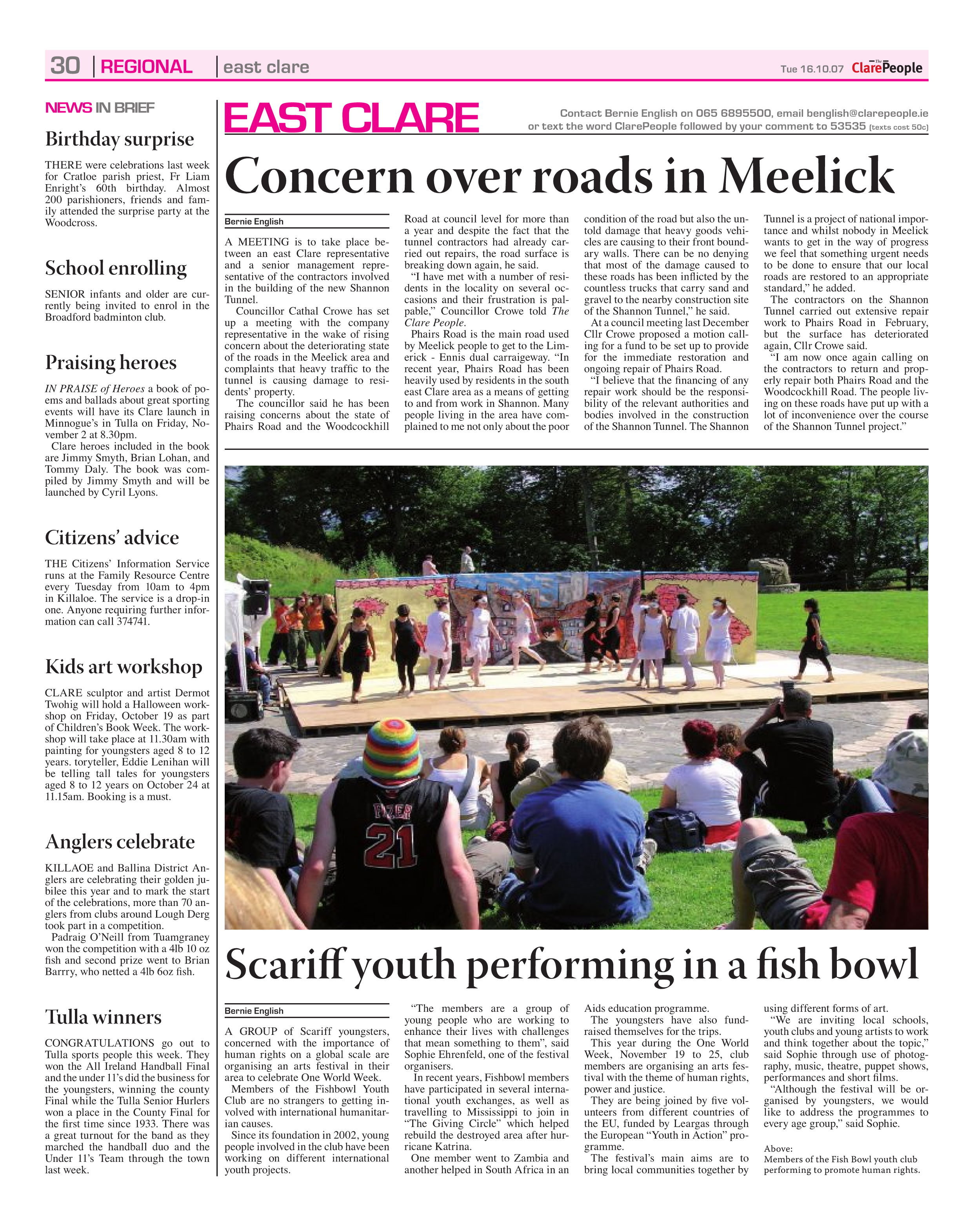 This article is from page 30 of the 2007-10-16 edition of The Clare People. OCR mistakes are to be expected so download the original SWF or the rendered page 30 JPG