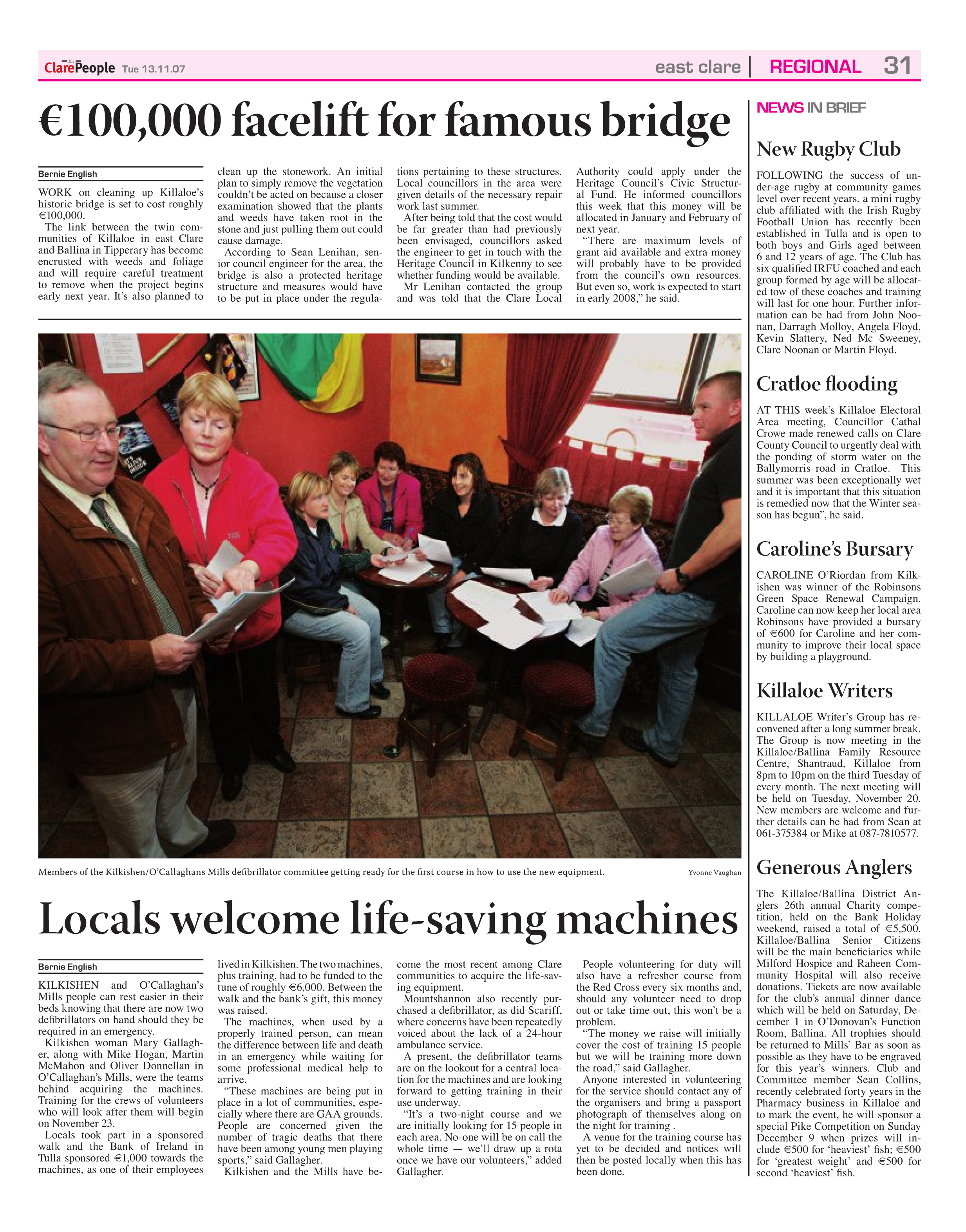 This article is from page 31 of the 2007-11-13 edition of The Clare People. OCR mistakes are to be expected so download the original SWF or the rendered page 31 JPG