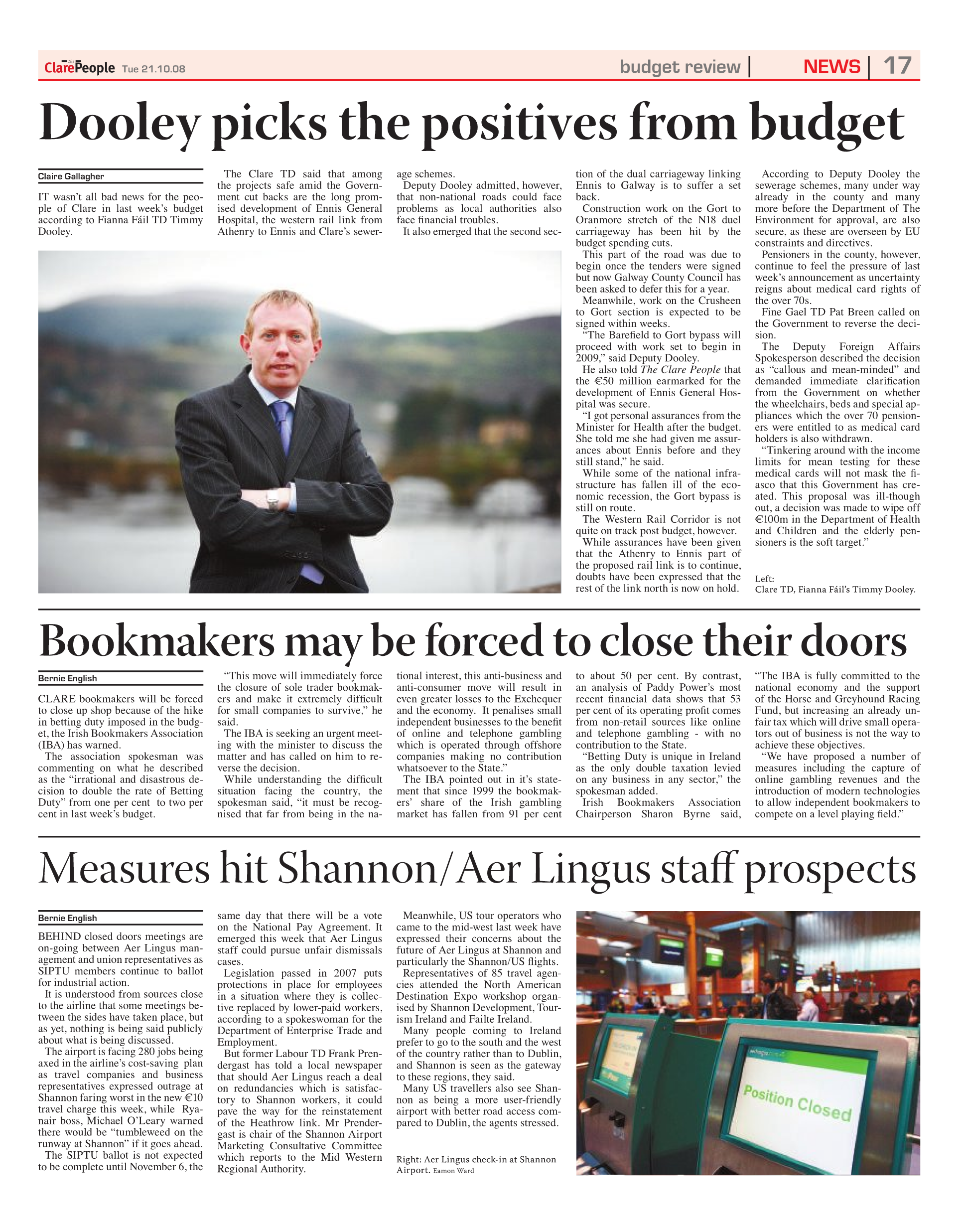 This article is from page 17 of the 2008-10-21 edition of The Clare People. OCR mistakes are to be expected so download the original SWF or the rendered page 17 JPG