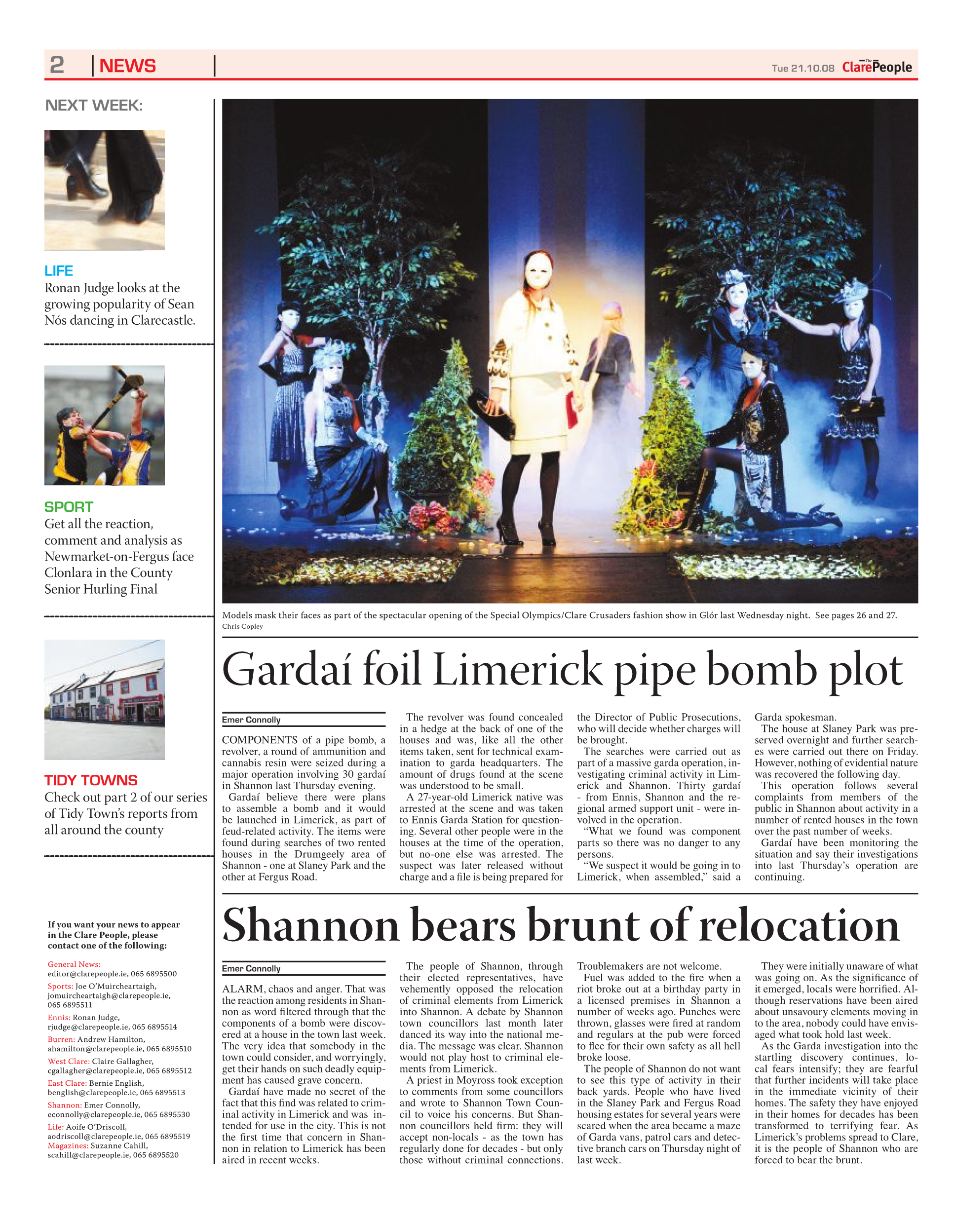 This article is from page 2 of the 2008-10-21 edition of The Clare People. OCR mistakes are to be expected so download the original SWF or the rendered page 2 JPG