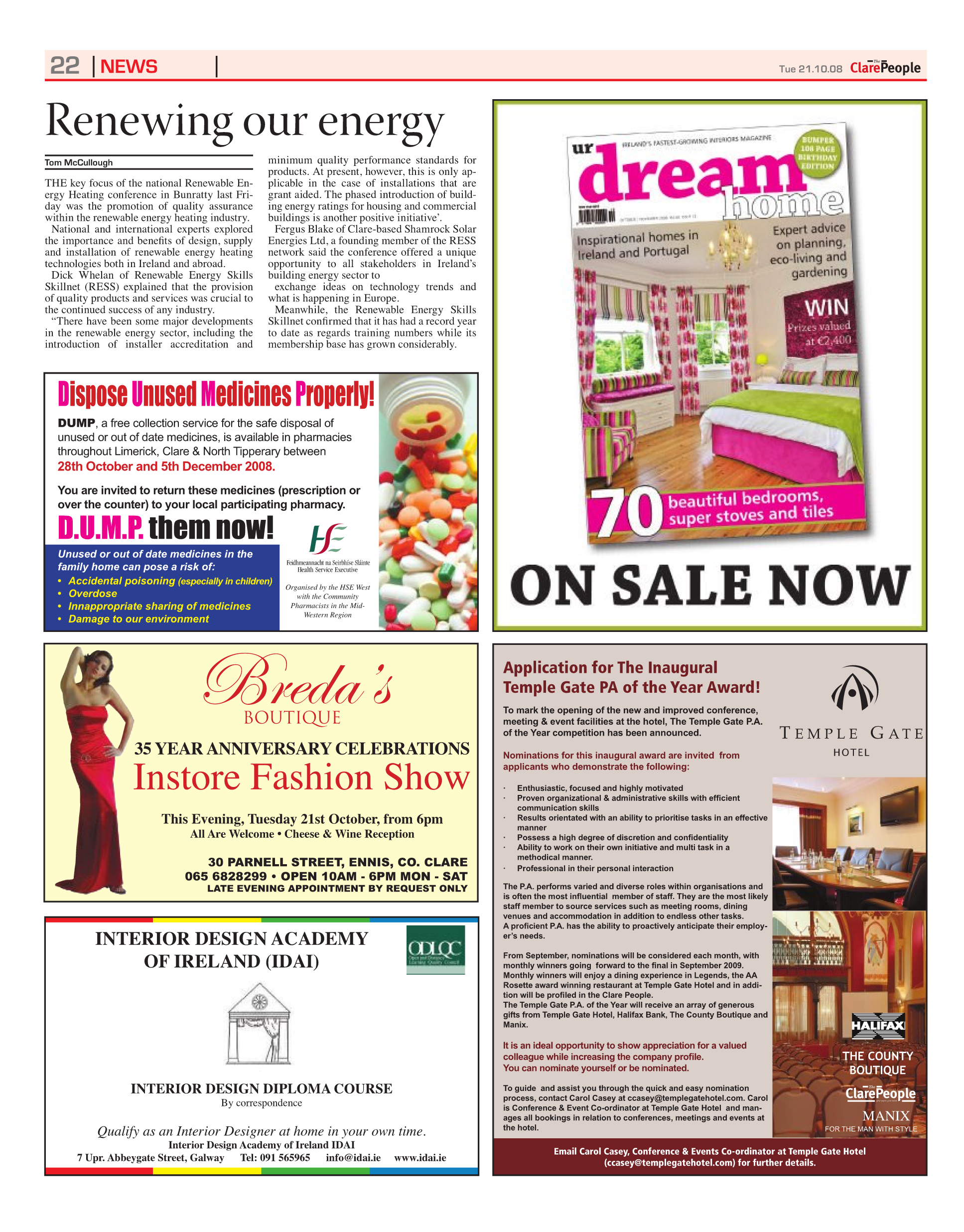 This article is from page 22 of the 2008-10-21 edition of The Clare People. OCR mistakes are to be expected so download the original SWF or the rendered page 22 JPG