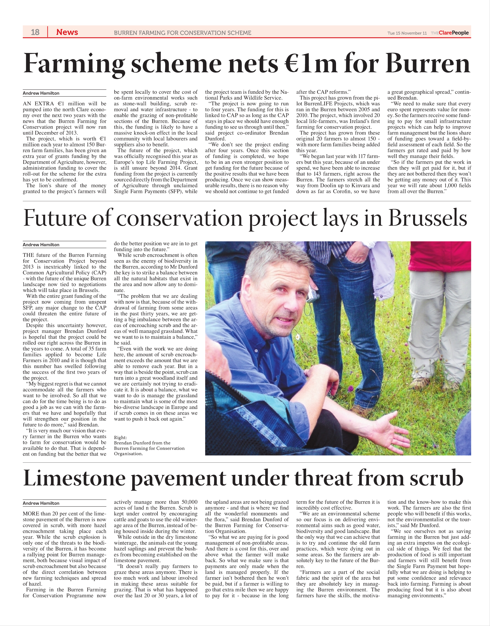 This article is from page 18 of the 2011-11-15 edition of The Clare People. OCR mistakes are to be expected so download the original SWF or the rendered page 18 JPG