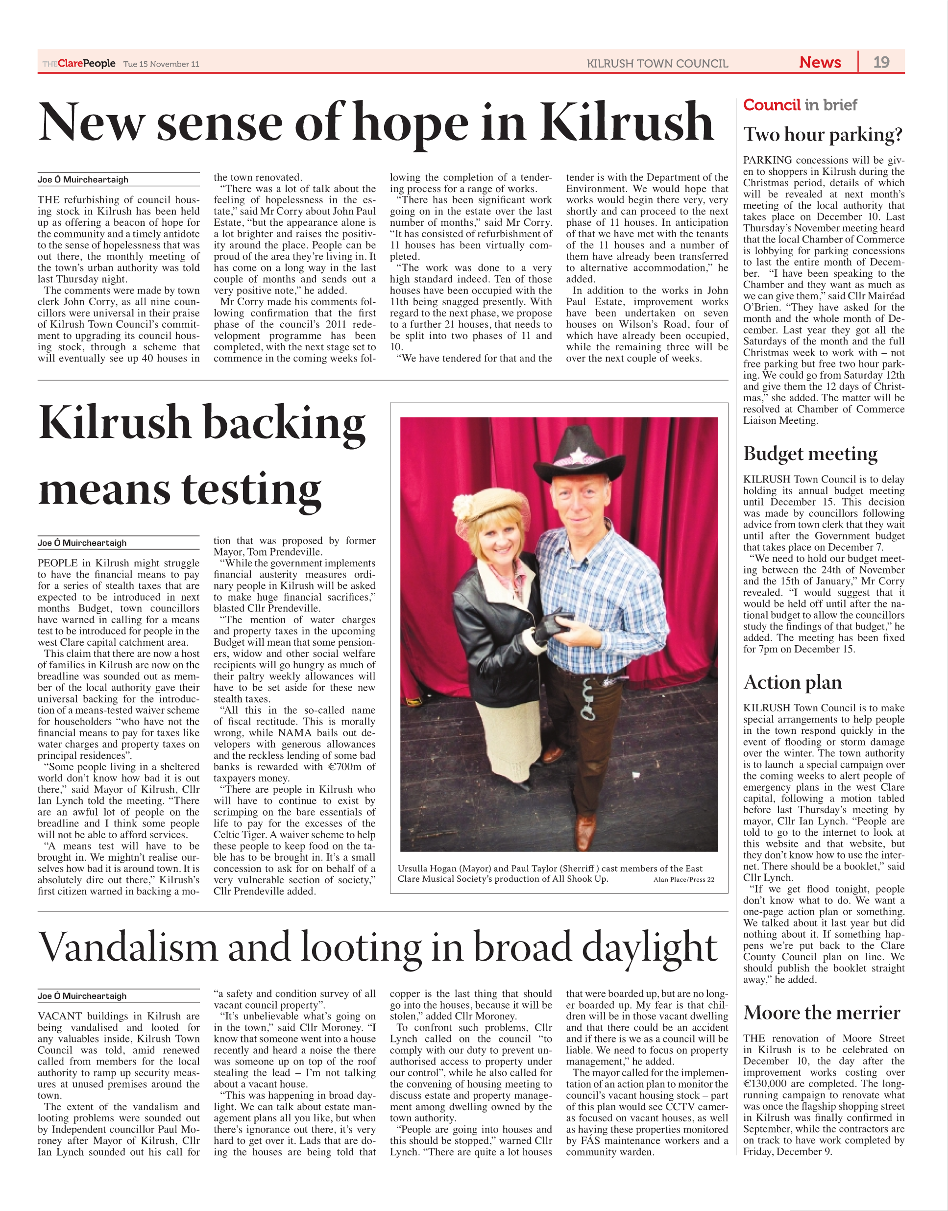 This article is from page 19 of the 2011-11-15 edition of The Clare People. OCR mistakes are to be expected so download the original SWF or the rendered page 19 JPG